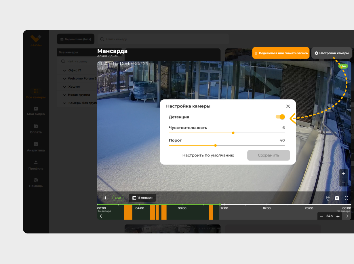 Если у вас подключена камера другого производителя (не LinkVideo), то для настройки детекции, напишите в Поддержку